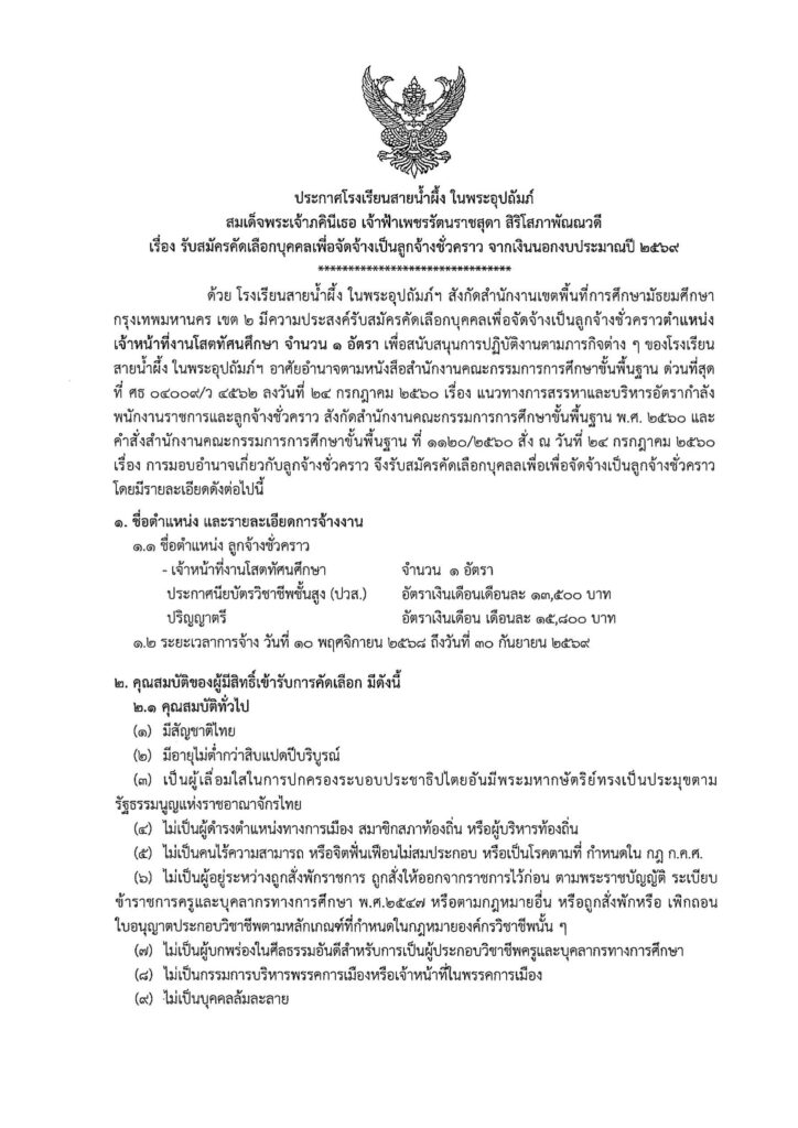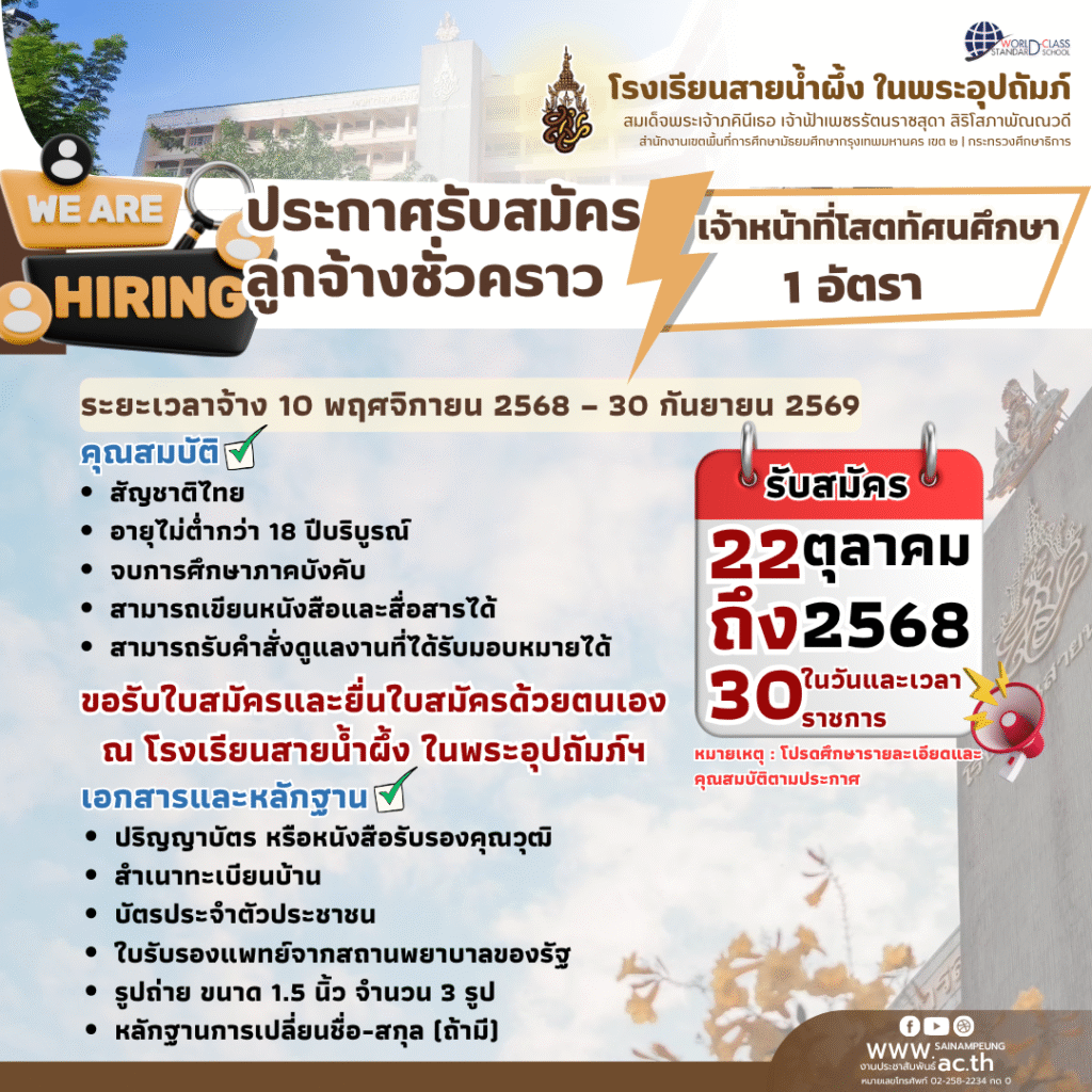 ประกาศ รับสมัครคัดเลือกบุคคลเพื่อจัดจ้างเป็นลูกจ้างชั่วคราว จากเงินนอกงบประมาณปี 2569 (เจ้าหน้าที่โสตฯ 1 อัตรา)