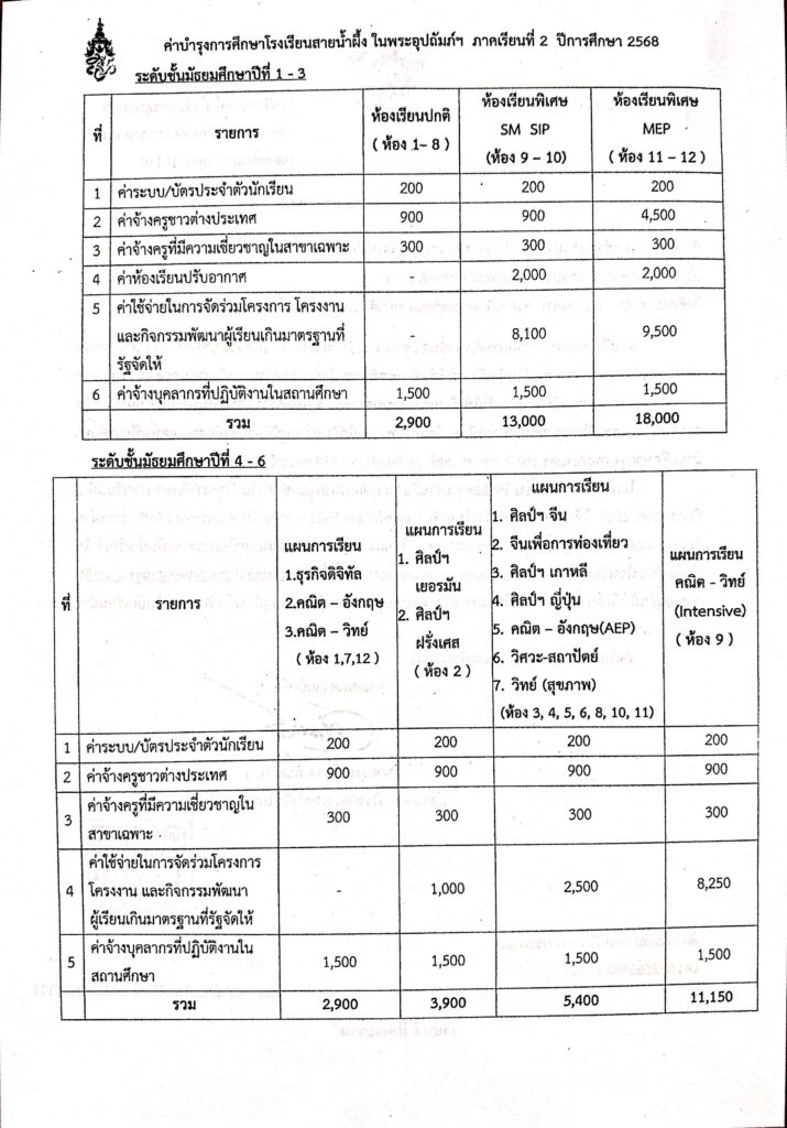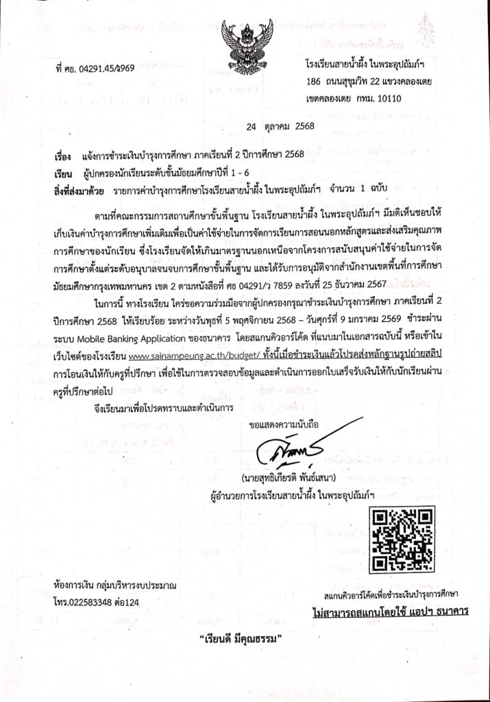 การชำระเงินค่าบำรุงการศึกษา ภาคเรียนที่ 2 ปีการศึกษา 2568