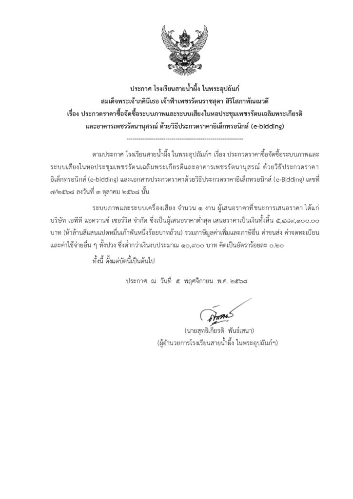 ประกาศ ประกวดราคาซื้อจัดซื้อระบบภาพและระบบเสียงในหอประชุมเพชรรัตนเฉลิมพระเกียรติและอาคารเพชรรัตนานุสรณ์ ด้วยวิธีประกวดราคาอิเล็กทรอนิกส์ (e-bidding)